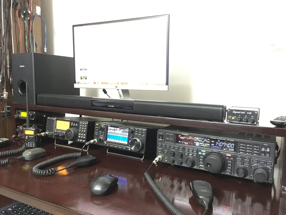 Presently used shack, having an ICOM IC 7300, FT 950 etc...